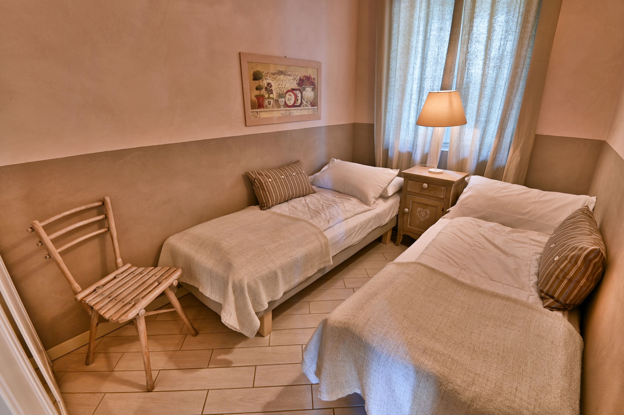I colori della terra, tipica dei vigneti, avvolgono con calore l'atmosfera di questo tranquillo appartamento, ideale se cercate momenti di puro relax ma con la certezza di trovare tutto a portata di mano.
